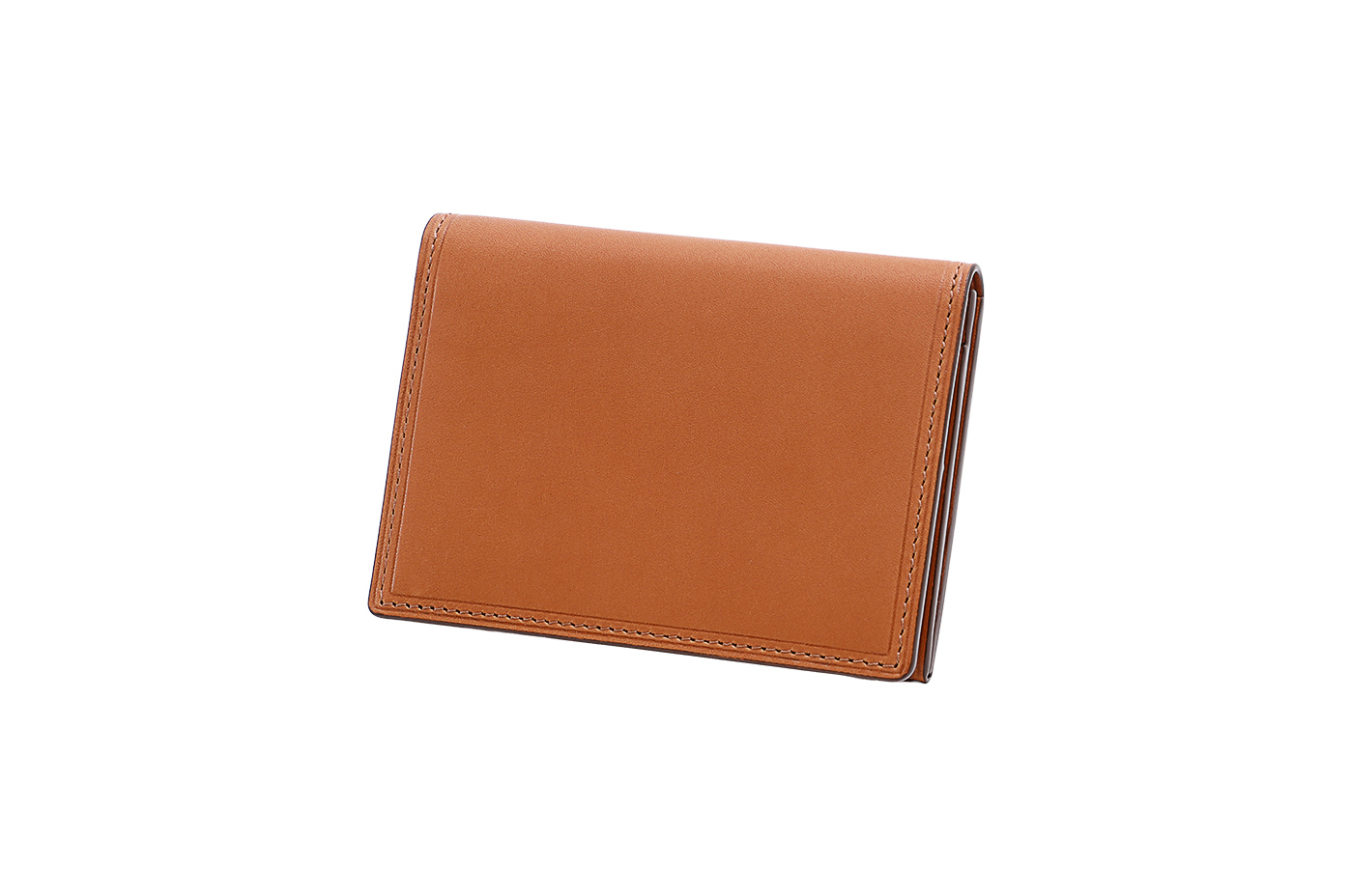 内装は、なだらかな尾根のようなカード段カットを採用。かぶせ裏(フタの内側の部分)にはふっくらとした封筒型のカードポケットを配置。切り口の直線とアールの調和が印象的なデザイン。外装の背面には、アールが付いた背段があり、使いやすさを高めている。