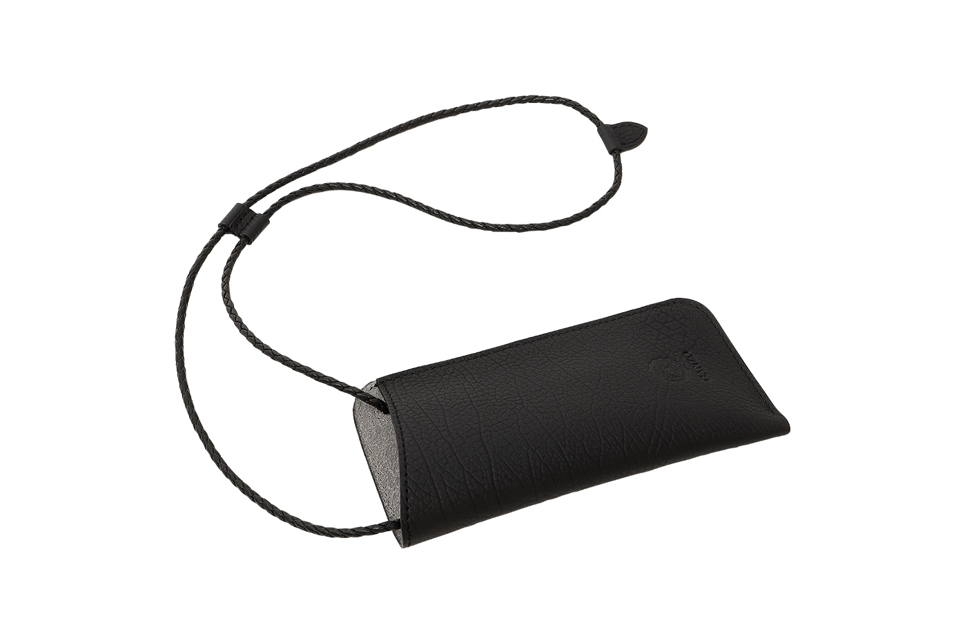 GANZOのグラスケースなら、上質感と佇まいの良さを兼ね備え、首から下げてもさりげなく品よく馴染む。